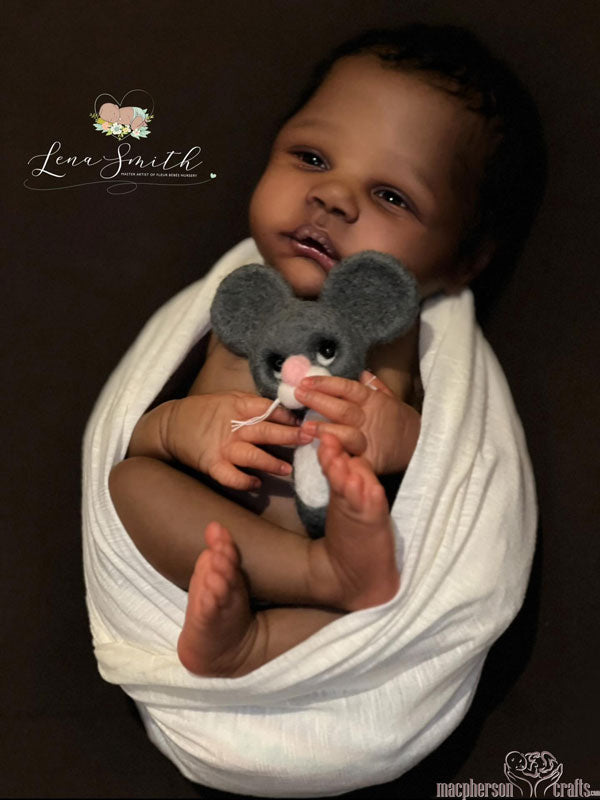 I will treat this sculpt like a ready made baby and create using my full artistic freedom. Babies will have my signature combi hair, painted and textured with mono rooting through the crown. They will have individual differences based on their age and painting, to reflect the height of realism. This means baby may have peeling skin on their ankles or wrists, a lip blister, sleep in the eyes, milia, and birth details like heel prick or a creamier skin tone if the baby is older and not so newborny.