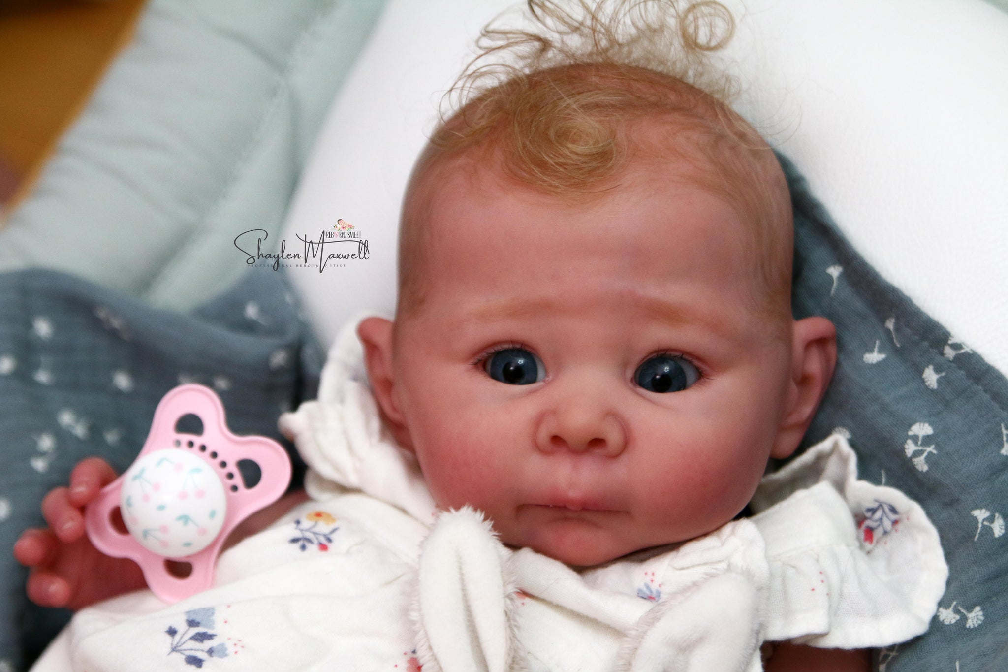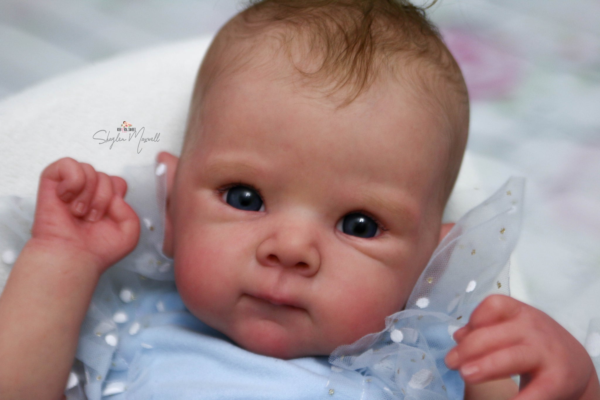 I will treat this sculpt like a ready made baby and create using my full artistic freedom. Babies will have my signature combi hair, painted and textured with mono rooting through the crown.  They will have individual differences based on their age and painting, to reflect the height of realism. This means baby may have peeling skin on their ankles or wrists, a lip blister, sleep in the eyes, milia, and birth details like heel prick or a creamier skin tone if the baby is older and not so newborny.