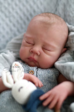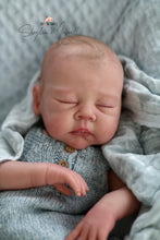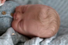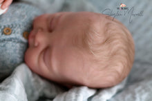 He has my signature combi hair, painted and textured with mono rooting through the crown. They will have individual differences based on their age and painting, to reflect the height of realism. This means baby may have peeling skin on their ankles or wrists, a lip blister, sleep in the eyes, milia, and birth details like heel prick or a creamier skin tone if the baby is older and not so newborny.