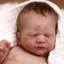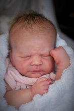 I will treat this sculpt like a ready made baby and create using my full artistic freedom. Babies will have my signature combi hair, painted and textured with mono rooting through the crown. They will have individual differences based on their age and painting, to reflect the height of realism. This means baby may have peeling skin on their ankles or wrists, a lip blister, sleep in the eyes, milia, and birth details like heel prick or a creamier skin tone if the baby is older and not so newborny.