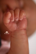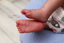 I will treat this sculpt like a ready made baby and create using my full artistic freedom. Babies will have my signature combi hair, painted and textured with mono rooting through the crown. They will have individual differences based on their age and painting, to reflect the height of realism. This means baby may have peeling skin on their ankles or wrists, a lip blister, sleep in the eyes, milia, and birth details like heel prick or a creamier skin tone if the baby is older and not so newborny.
