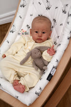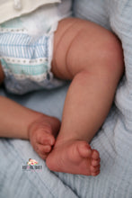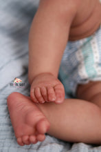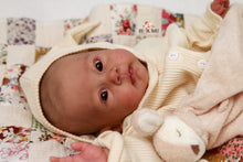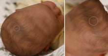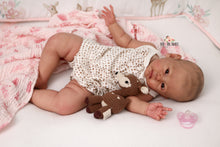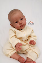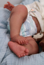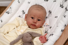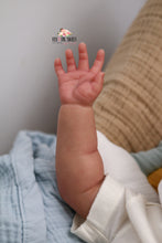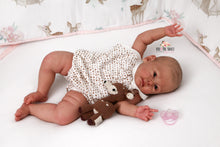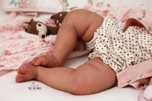 She is 22 inches long, full curly limbs, with gorgeous painted and textured hair and many incredible 3D skin effects. Her limbs are curly so she fits 3-6 month clothing. She poses so realistically and is weighted to about 6lbs 9oz.
