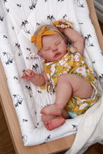 She has full arms, full legs, and is on a non-jointed body. She also has a gorgeous belly plate (non anatomical). She poses so realistically and is weighted to about 7lbs 3oz.