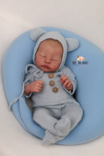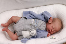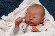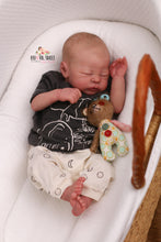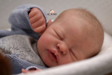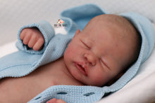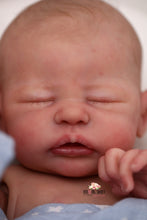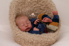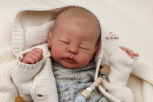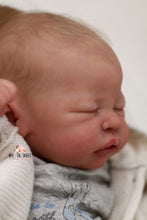 He is ready to ship, and goes home with everything pictured as a baby boy (or girl on request is available). He is 20 inches long, and absolutely exquisite with 3D combi hair, painted and mono rooted throughout the crown with premium soft Southern Charm mohair.